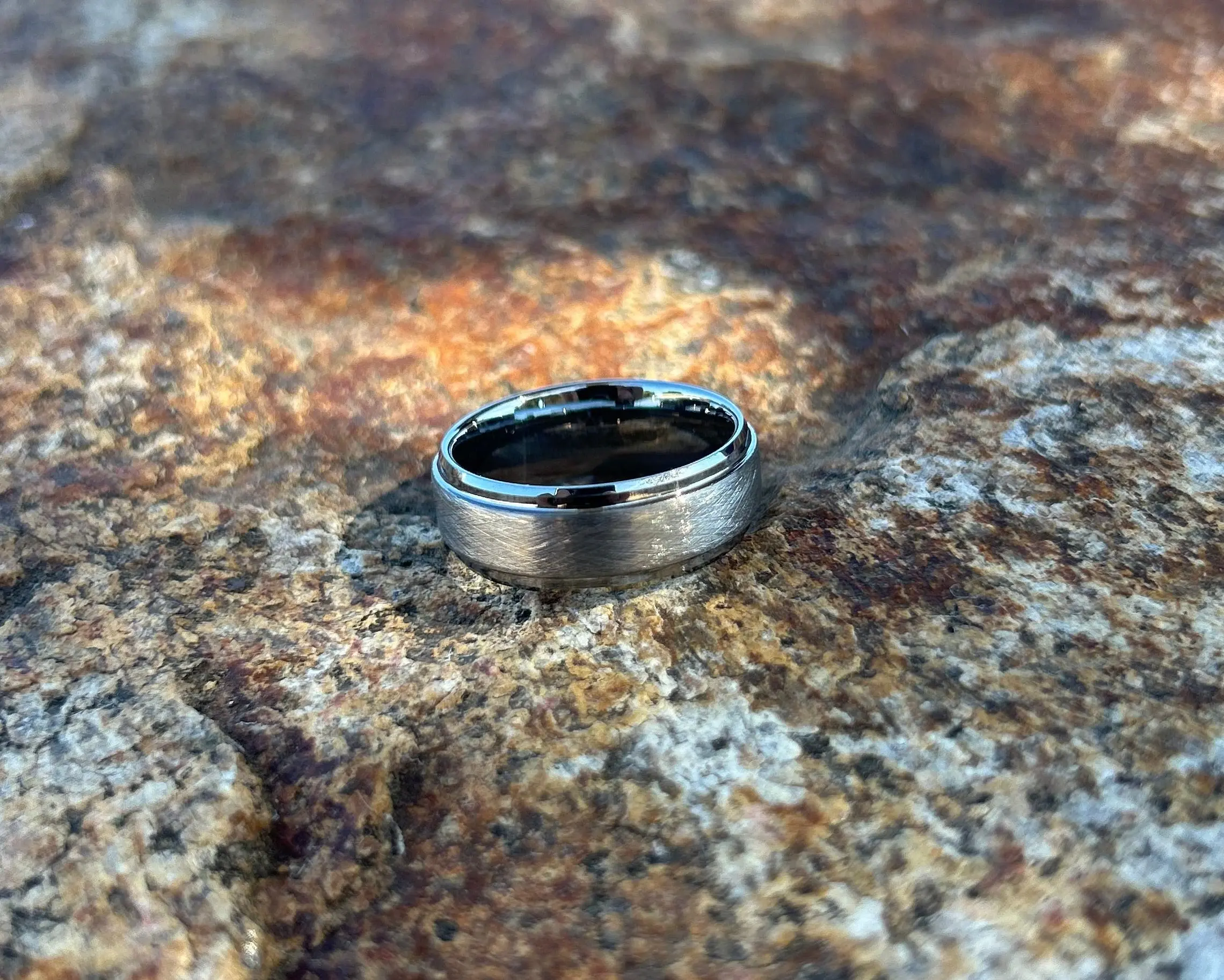 A study in refined resilience: this Lunar Silver Tungsten Band 8mm is a tungsten‐carbide ring that features a finely brushed silver‑gray center flanked by polished beveled edges. Comfort‑fit on the finger, hypoallergenic and scratch‑proof, it’s engineered to withstand your daily battles while retaining an air of modern elegance.